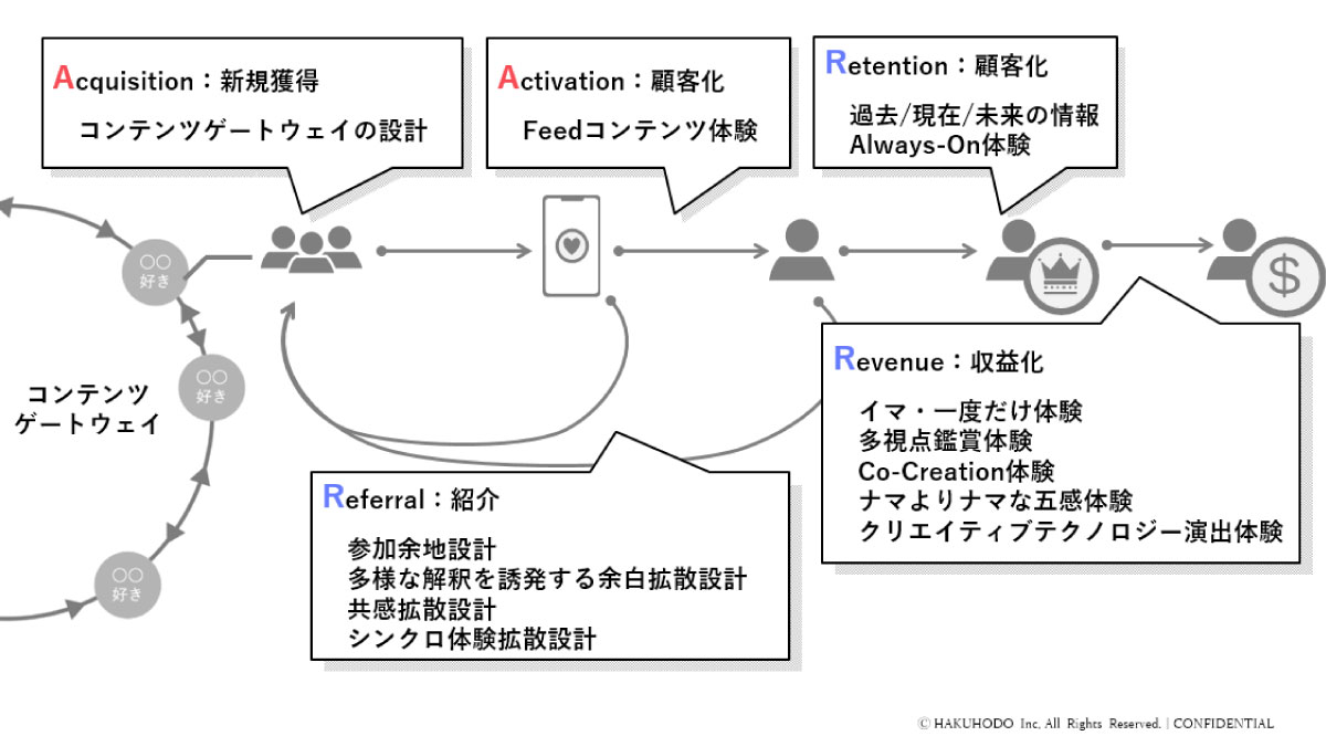 いずれにしても、コロナによって加速したDXは多くのコンテンツビジネスにとって集客/収益両面で拡大のチャンスをもたらしています。ただ、そこで忘れてはならないのが、ファンの感情を動かすポイントをどう抑えるか。我々博報堂コンテンツビジネスラボは、AARRRの各フェーズでファン心理の要所を押さえた最適なビジネス・体験設計をお手伝いしてければと考えています。