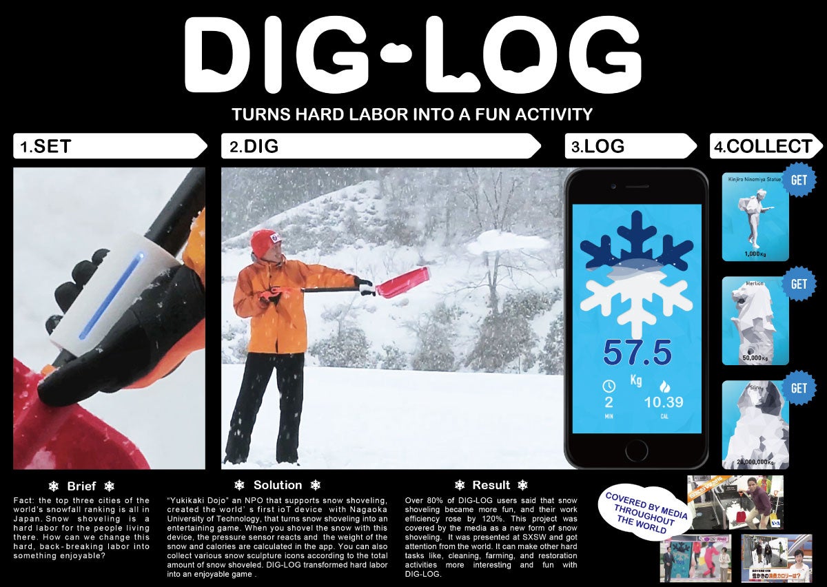 繰り返しになるが、我々は広告企画職なので、企画をするところにその存在価値がある。技術を調達してきて、そこに文脈を付け、生活者や社会のお役に立つように、喜ばれるようにして実施する。その実施のフィードバックを受け、また次のことを考える。「Dig-Log」は「Rice Code」ほど、世界のアワードで評価はされなかった。それは「雪はつらいもの」という本件の前提への理解が得られにくかったからだと思う。世界の中で雪が降る地域はごくわずか。通常、雪は「嫌なもの・つらいもの」ではなく「ファンタスティックなもの」と思われている。「農村→過疎」ほど「雪かき→重労働」は理解されなかった。それでも良いと思っている。なるほど、そういうものかと、わかったことが収穫である。