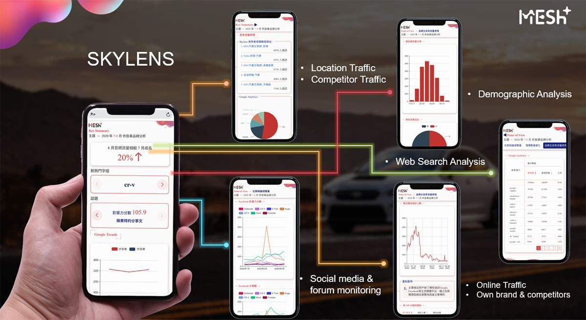 SKYLENSは、ターゲットのデジタルフットプリントをベースに、市場調査や生活者の特定、メディアプランニング/エグゼキューションから購入後の追跡まで、包括的なデータマーケティングサービスを提供するためのプラットフォームです(台湾最大の通信会社である中華電信(CHT)よりデータ供給されています)。