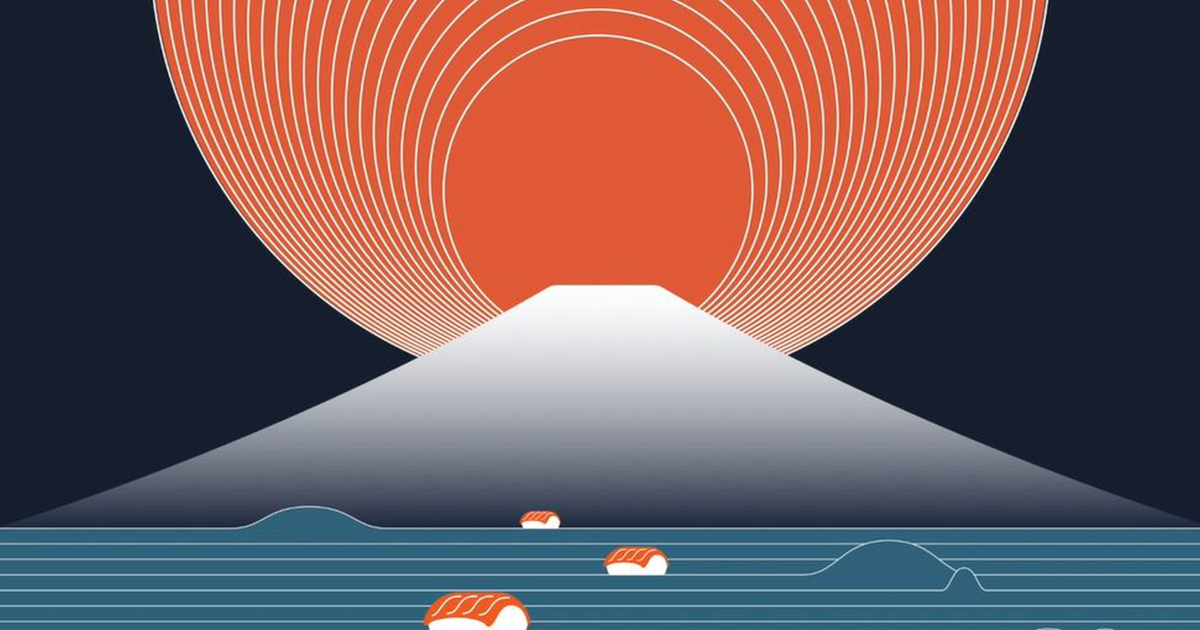 一つ一つの寿司が家の形をしており、一見とてもシンプルに描かれているように見えるかもしれませんが、試行錯誤を繰り返した末のベストな表現方法です。