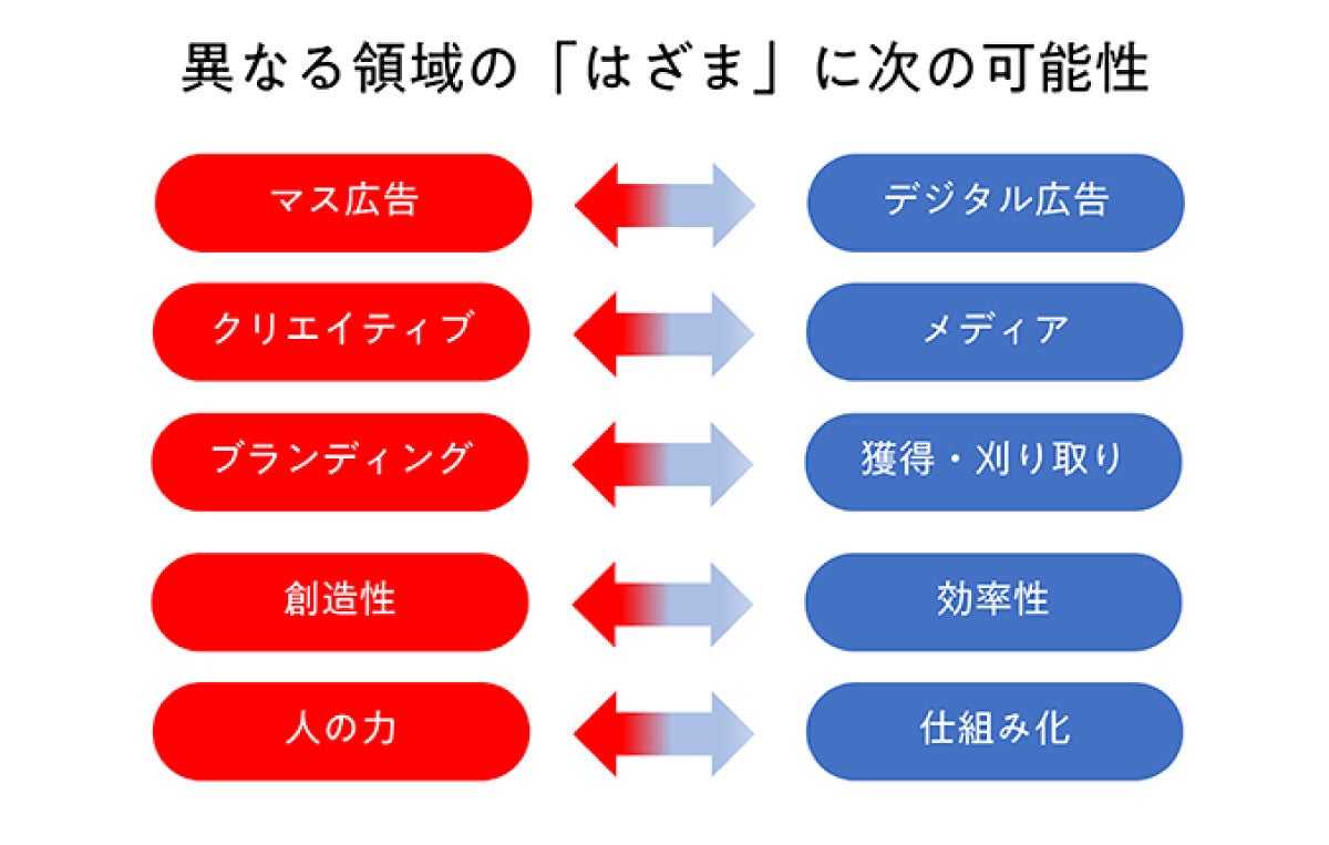 そこで、私が今、取り組んでいるのが、認知から購買までの断絶を解消し、アッパーからロウワーファネル全体を接続・統合すること。それによって、創造と効率の両立を目指しています。これまで相入れることが難しかった異なる領域の間には「はざま」があり、それをミドルファネルで埋めていこうという考えです。