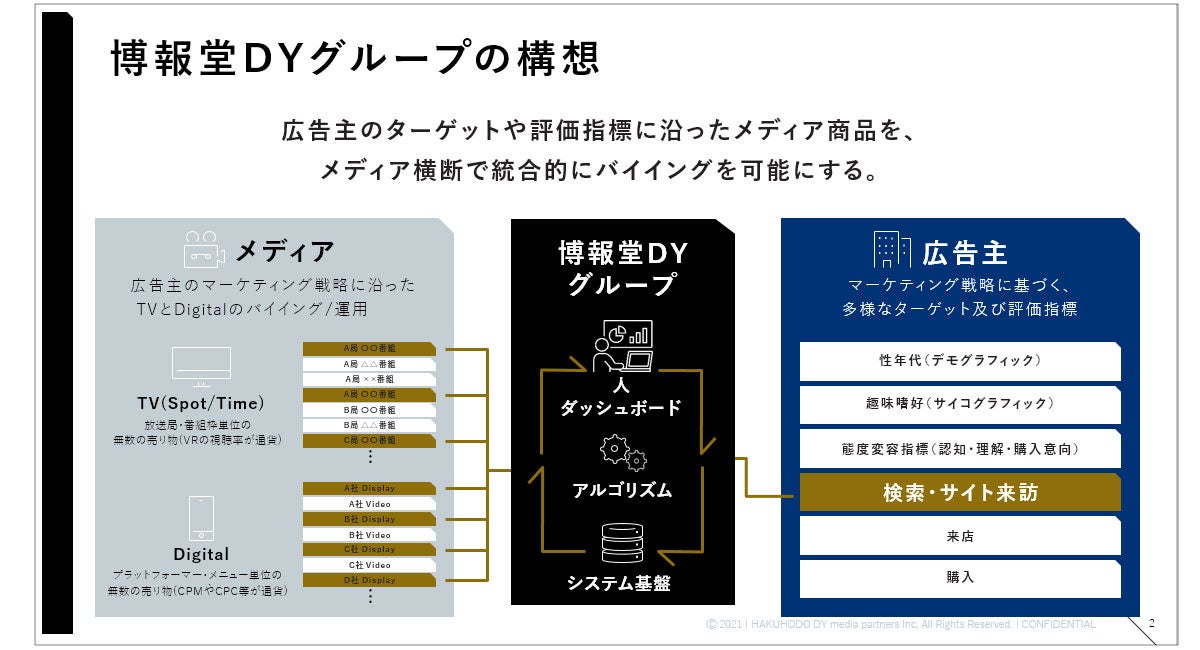 また、冒頭で申し上げたように、デジタルが出てきたからこそ「広告の本質」を考えられるようになりました。広告の目的とはマーケティング戦略に基づいてターゲットを規定し、そのターゲット層がある状態からある状態へと意識・態度または行動変容を起こすことです。ただ、そうした目的の下にメディアを直接買い付けられるのかというと、難しい面がある。そこで、それが可能になる基盤と仕組みを整えたい、と考えました。