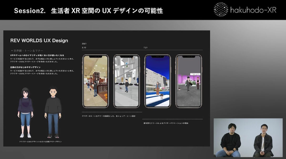 講演では、まず博報堂DYグループのXR領域における取り組みを紹介し、その次に、生活者XR空間における「ビジネスの可能性」、「UXデザインの可能性」、「広告体験ビジネスの可能性」、「生活者アバターのビジネスの可能性」の4つのセッションに分けてインタビューが行われました。