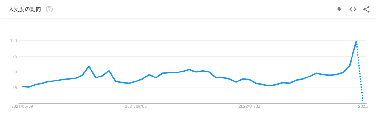 今回のヒット習慣予報のテーマはそんな観光に関する新しい潮流「音声ARガイド」です。まだまだコロナの状況は先が読めない今日ですが、「観光」の検索数をみてみてもここ1年で右肩上がりに推移していることが見て取れます。