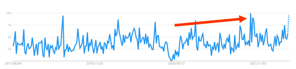 実際にGoogleトレンドでも「ペット同伴可」と検索してみると、緩やかではありますが近年検索数が上昇傾向にあることがわかります。