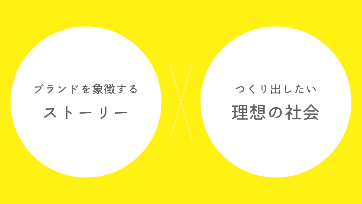 藤平:僕も同じ懸念を持っていて、「ラブ&ピースの罠」と呼んでいます。そもそもパーパスを決めることが目的化しちゃうと、ラブ&ピースみたいな、否定できないあいまいな言葉になりがちですよね。“それっぽく”いいことを掲げちゃうというか。そうなると、決めたはいいけど、あまり変わらないんですよね。僕はパーパスを「ブランドを象徴するストーリー×つくり出したい理想の社会」の掛け算でつくることが多いです。左が落ちると主語の存在感が曖昧になり、右が落ちると描く未来が曖昧になる、というバランスを取りながら決めていく感じです。
