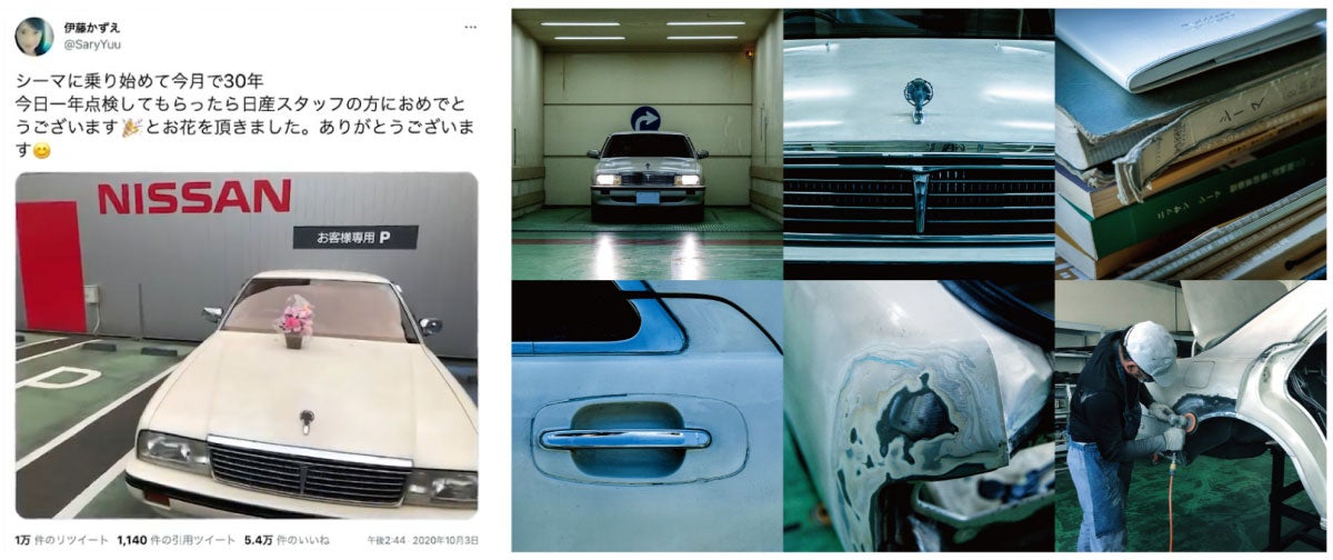 私がそれを実感した例として、日産自動車の「#シーマレストア」を紹介したいと思います。俳優の伊藤かずえさんが30年以上もシーマに乗られていて、車検の際に日産のスタッフからお花を贈られたことをSNSにアップしたんです。それが話題になり、一般の方々から日産に向けて「長く乗れるようにしてあげてほしい」といった声が寄せられたんですね。