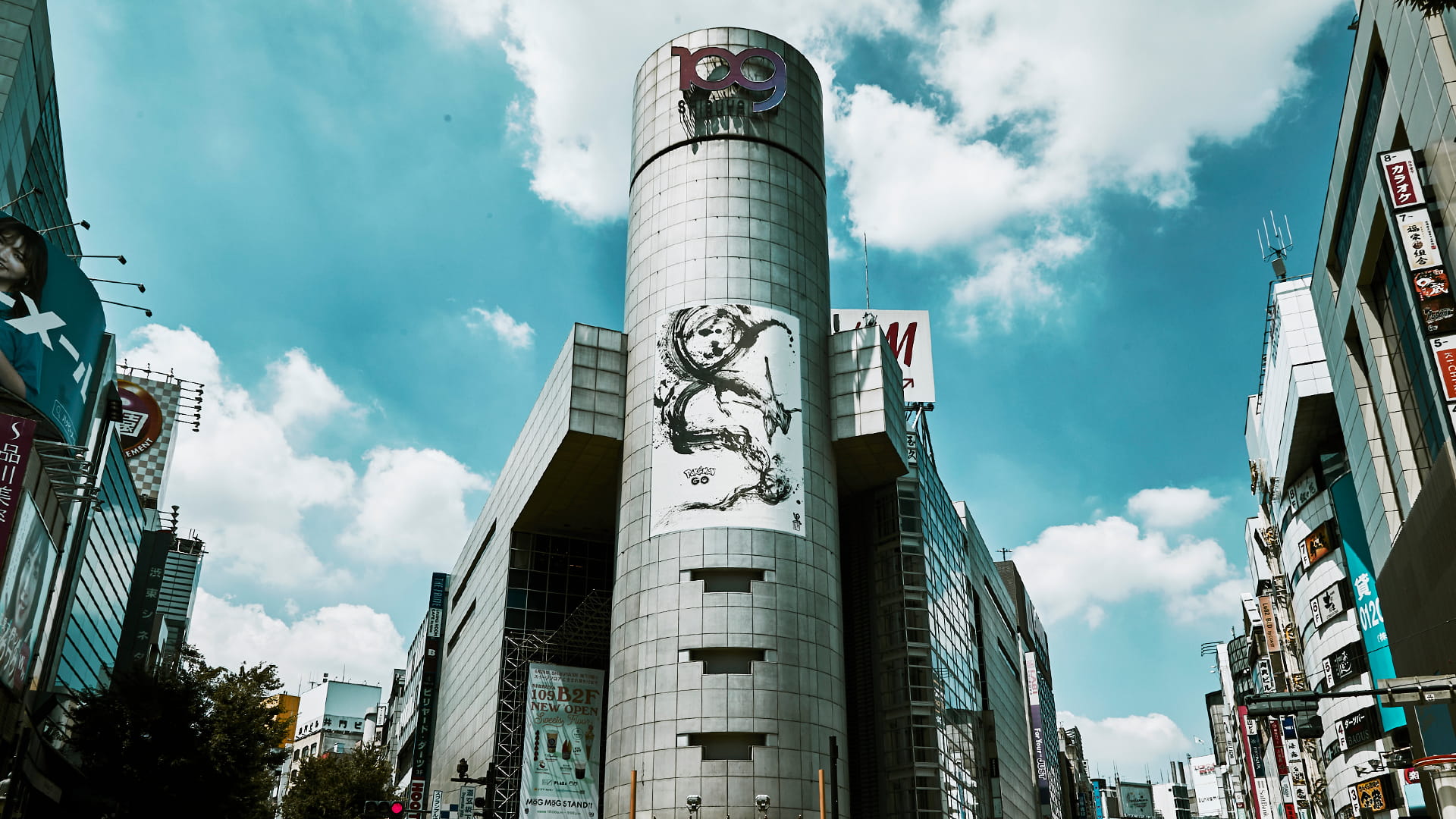 Pokémon GOのグラフィック広告。ランドマークに出現する伝説のポケモン「黒いレックウザ」を墨絵で描き、渋谷109や渋谷駅に出現させた。現実世界で新たなポケモンをつかまえる高揚感を演出。