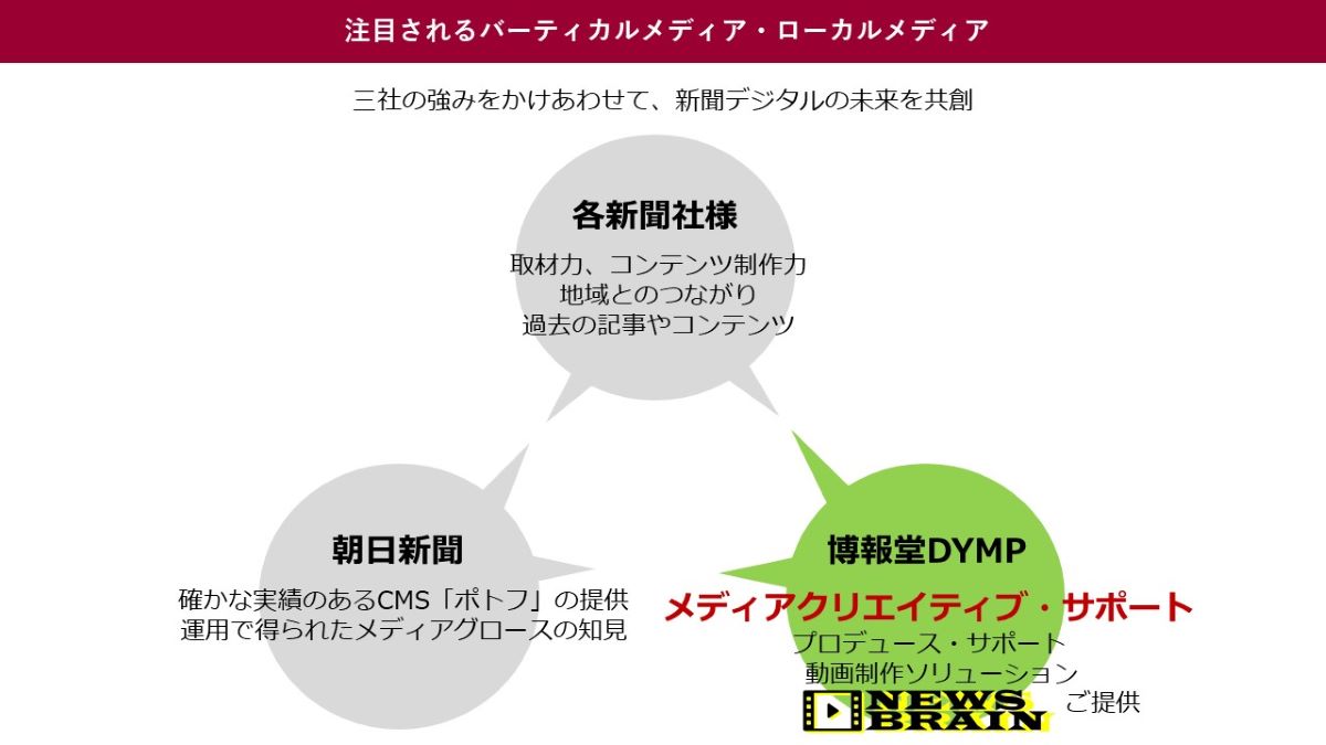 朝日新聞社と組み、地方紙や他メディアを支援。