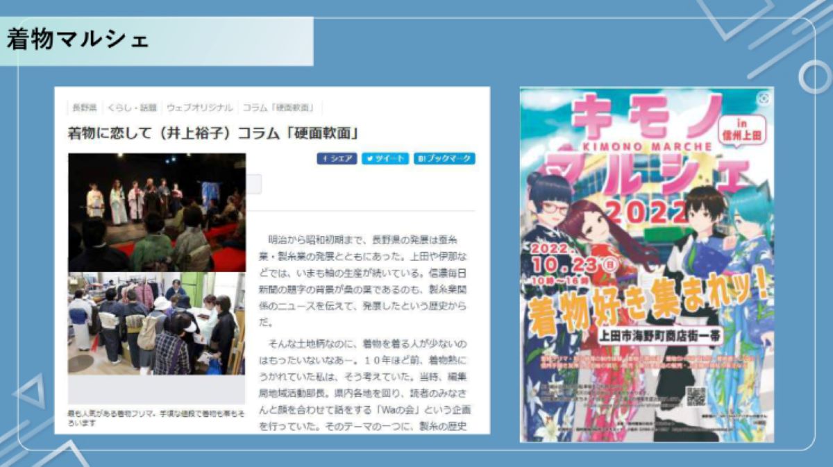 そこにかかわる人達をつなげたいと考えて、各地で交流会を開きました。その中の「着物が好き」というキーワードから誕生したのが、「キモノマルシェ」というイベントです。コロナ禍で一時中断しつつも、2022年10月で7回目を迎えました。