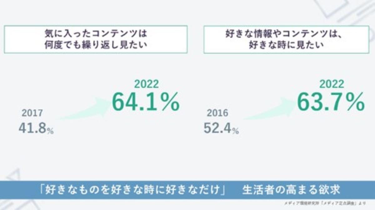 新美妙子(以下、新美):最新のメディア定点調査を踏まえると、現在の生活者は情報やコンテンツを「自分の好きな時に好きなだけ」見たいと考えるようになってきています。
