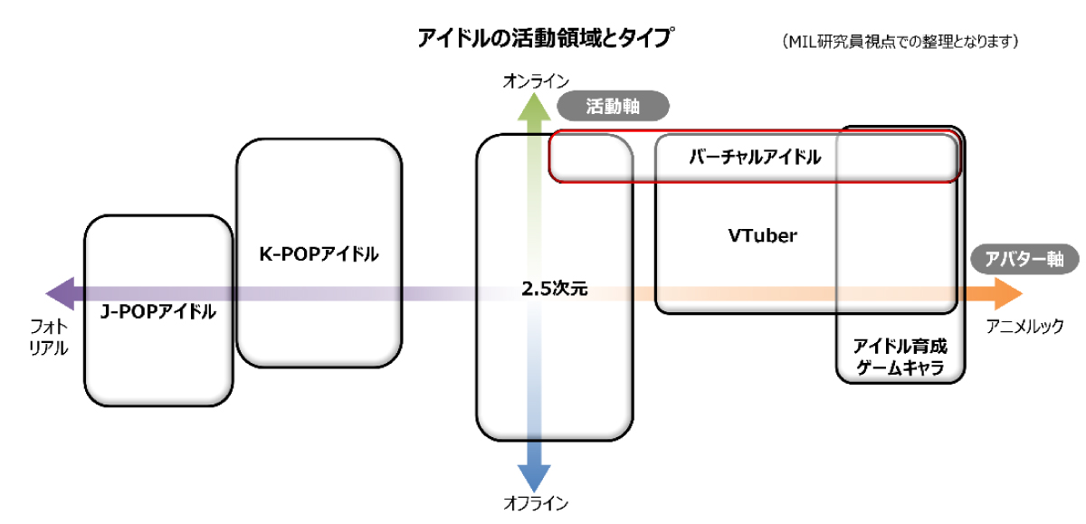 確かにそうですね。いずれにしても、生身の身体から解放されてより自由な表現が可能になる分、それぞれのバーチャルアイドルがさまざまな世界観を構築し、ファンの支持を集めています。今後はよりニッチな市場に向けて、ニッチなアイドルが誕生してくるかもしれません。非常に大きな可能性をはらんだ領域なので、今後も注目していきたいと考えています。