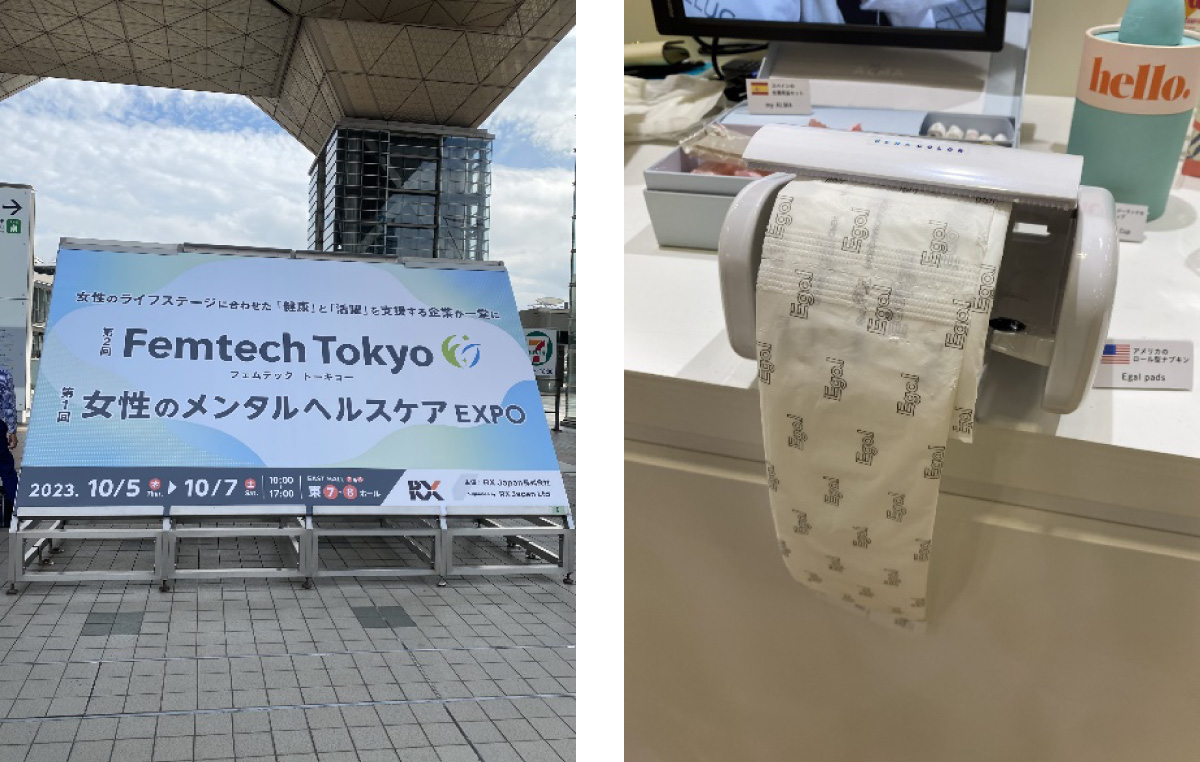 先日訪れたフェムテック東京でも、アメリカの学校で、トイレ内にトイレットペーパーのロールのようにナプキンが連なって設置されており、誰でも自由に使えるようにしている様子が紹介されていました。別の国では、毎月生理用品が一式届くサブスクの事例もありました。貧困状態にある人が、誰かに相談せずとも無料で自由にナプキンを使える環境づくりや、確実に生理用品を個人に届けるという取り組みが、世界的に広がりつつあるようです。