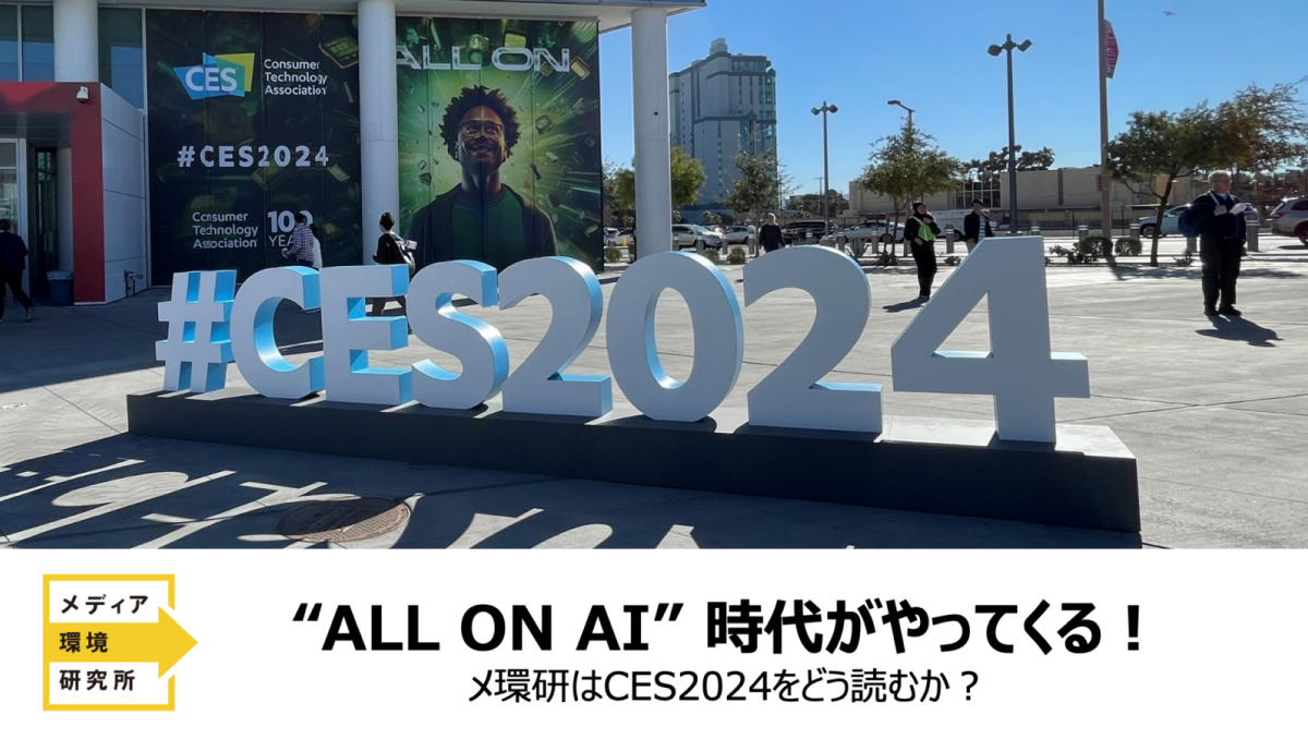 この記事では、メディア環境研究所ならではの視点で、2024年のCESを振り返ります。キーワードはAIを通じた「Experiences」=顧客体験の設計。ChatGPTの登場から1年以上が経ち、実用レベルに進化したAIが私たちの生活を変えていく……。現地に足を運んだメディア環境研究所 所長の島野真と、グループマネージャー兼上席研究員の山本泰士がそんなヒントをレポートします。