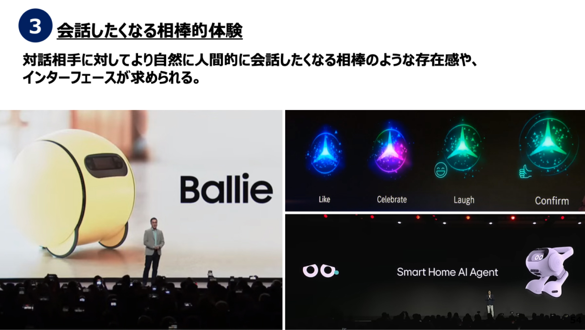 この1年間でAIの「統合力(マルチモーダル化)」「推論力(推し量る力)」「提示力(自然なやりとり)」が飛躍的に向上したことにより、生活により近い日用品・消費財など、生活者が直接触れるインターフェースにも革新が起きています。