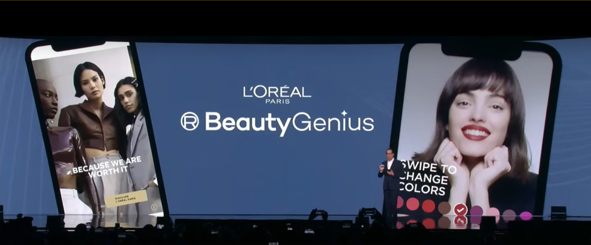 ロレアルはビューティ体験をAIで革新することを高らかに宣言しました。基盤になるのは、37のインターナショナル・ブランドと、接客データや顧客の肌情報など10ペタバイトにも及ぶ膨大な美容のデータベース。これらを活用したのが「Beauty Genius」というアプリです。