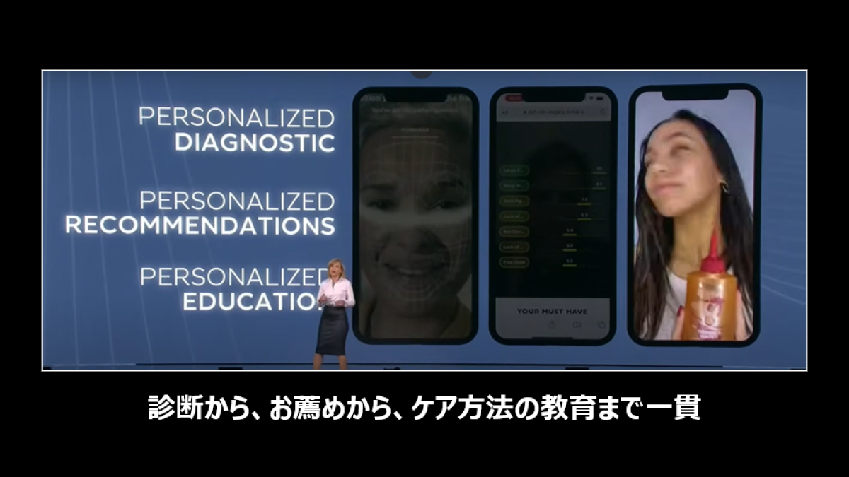 プレゼンターであるニコラス・ヒエロニムスCEO は「Beauty Genius」は汎用的な対応をするチャットボットではなく、個人にパーソナライズされたAIエンジンで、顧客体験の変革であることを強調しました。