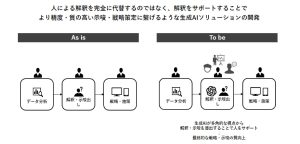 1つは、AIに業務を代替してもらい、仕事の効率化を実現する方向性です。それからもう1つは、AIを活用することでアウトプットの質を高めるという方向性です。プロジェクトMonjuはその両方に適用可能ですが、より力を入れていきたいのは後者です。