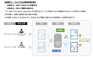 〈TV AaaS Formation Optimizer〉を活用すれば、クライアントが設定したKPIの達成を目指して作案の枠を組み替えていくことが可能になります。