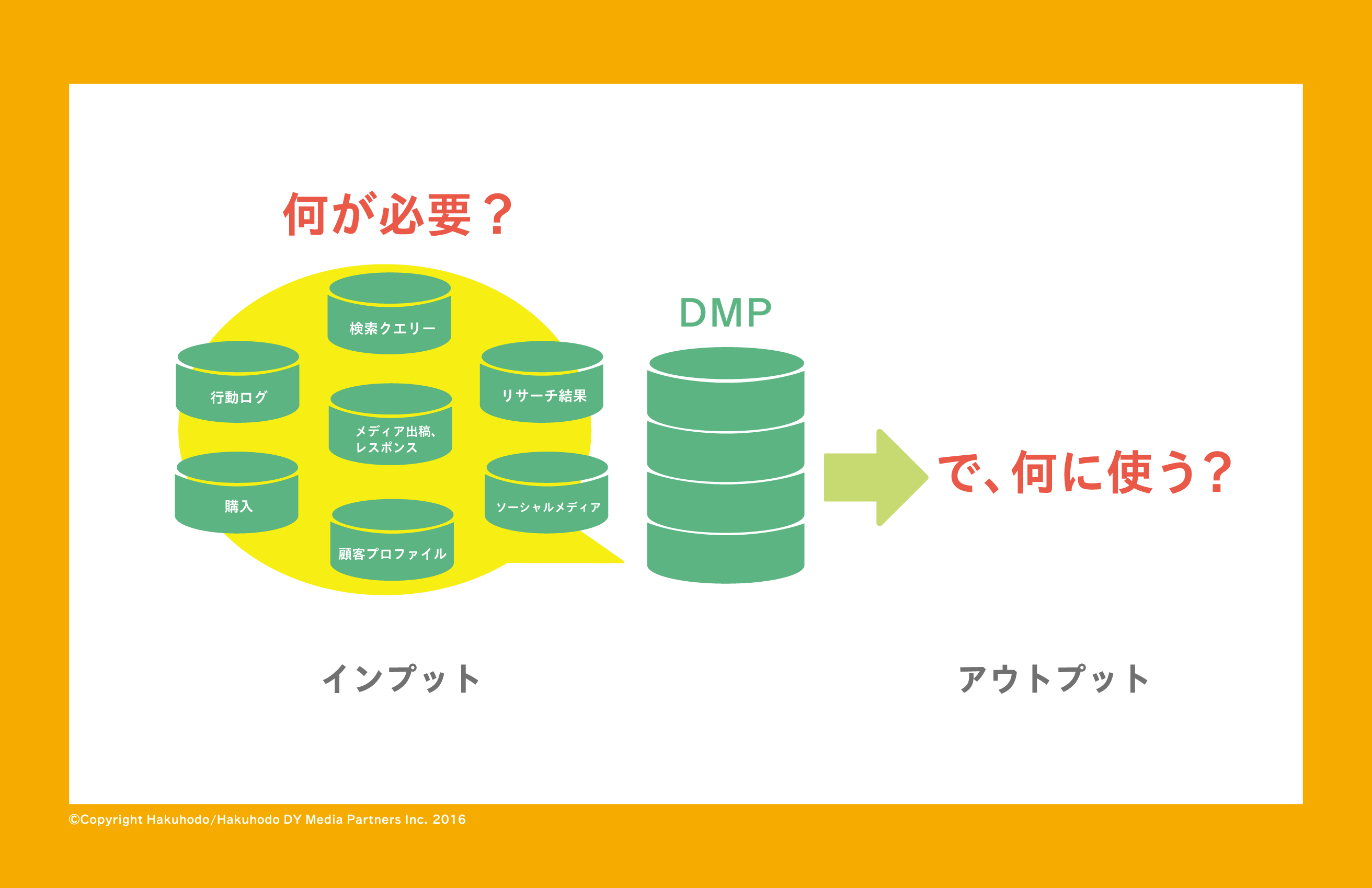 DMPもデータベース「システム」なので、放り込みやすく、取り出しやすくという状態を維持するための保守、より利用価値を高めていくための改修といったコストもある程度かかってきます。なので、そのコストもリクープできるだけの利用価値をあらかじめ見込んで作り、使いこなしていくことがそもそもの「マーケティング活用」のためにも重要になってきます。