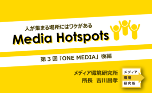個人化、多様化、分散化が進み、個人すら捉えにくくなる現在。それでも、多くの人が集まる熱いメディア/コンテンツは存在します。その熱さを生み出した方々にメディア環境研究所所長 吉川がお話を伺うこのシリーズ。