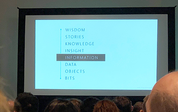 まず会期初日、マイクロソフト ガレージに所属するM.Pell氏が語ったのは、「スマートインフォメーション」という、これからの情報のあり方だ。