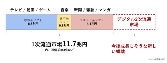 ブロックチェーンゲームが増えることによって、デジタル上の資産も増加すると考えられることから、そうした資産を交換する「デジタル2次流通市場」が、今後は伸びることが期待できそうです。2次流通市場はヤフオクやメルカリなどのサービスが元々存在していましたが、コピー禁止の技術によってデジタル上に2次流通市場が形成され、まだ競合が少ない点がポイントです。総務省のデータによると日本のコンテンツ市場は約11.7兆円あるとのことですが、これは全て1次流通です。この市場において、「デジタル上での2次流通」がどのような付加価値を生み出すのか、普段メディアやコンテンツ産業と接する機会が多い我々が真剣に考え、ビジネスチャンスを狙っていかなければならないと思っています。デジタル2次流通市場で流通するアセットはまだそれほど多くありませんが、真っ先に流通するのはゲームです。ブロックチェーンゲームのターゲットは普段ゲームを遊ぶユーザーと個人投資を行っているユーザーの2種類いると考えており、それぞれ「ゲームで遊ぶことが価値になる点」と「ゲームで資産形成が可能な点」が訴求ポイントになると考えています。