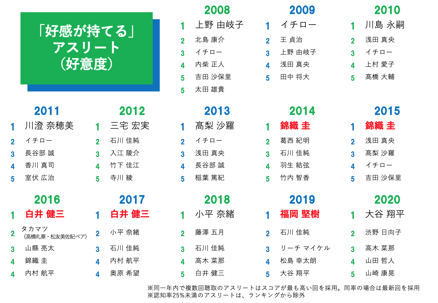 ・〜アスリートイメージ評価調査 10周年記念〜 「誠実な」アスリート、この10年の変化は?