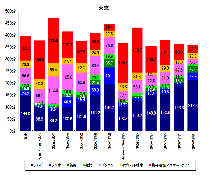 【図1-1】メディア総接触時間 性年代別(東京)