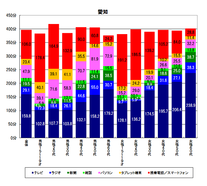 【図1-3】メディア総接触時間 性年代別(愛知)