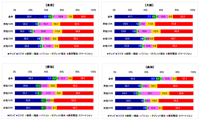 メディア接触の性年代別傾向は4地区共通