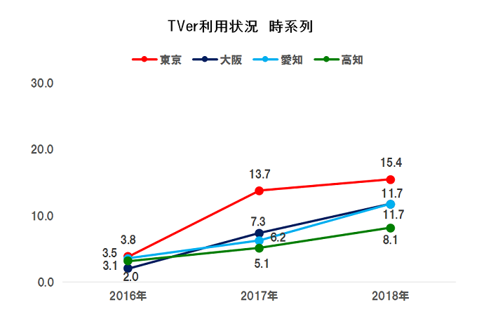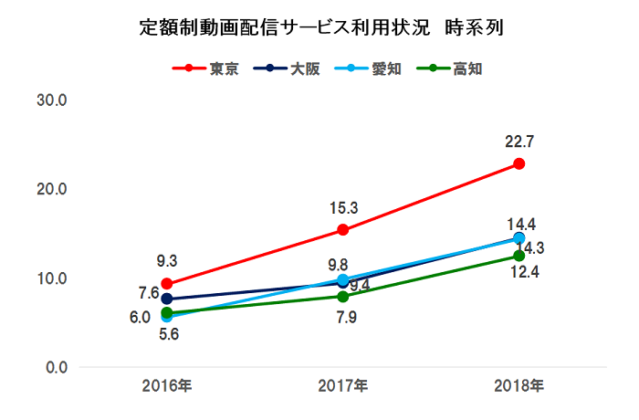 自宅内にWi-Fiが普及し(東京:88.1%、大阪:81.8%、愛知:88.3%、高知:68.6%)、テレビはテレビコンテンツだけを楽しむ機器ではなくなった。さまざまなスクリーンで、インターネット上の無数のコンテンツを見ることができる環境が整ったのである。