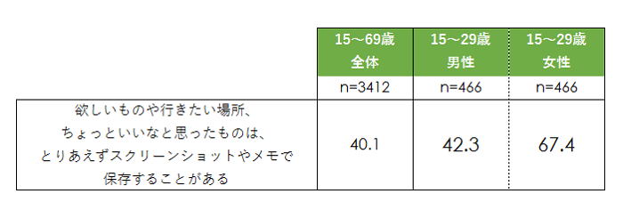気になる情報は忘れないように、スクリーンショットやSNSの保存機能などを活用してとりあえず手元にためています(図1)。街中のイベントやポスターなどスマホの外の情報も気になれば写真にとって保存することも多いようです。この「とりあえずためる」行動は若者に限らず幅広い年代層がすでにスマホでやっている情報のとり方です。スマホ・ネイティブのインタビューでは「大事な情報はすべて画像フォルダにためています。オフラインでも見返せるし、これ1つで複数のアプリを探し回らなくていいから便利!」と情報収集の知恵として話してくれる人もいました。
