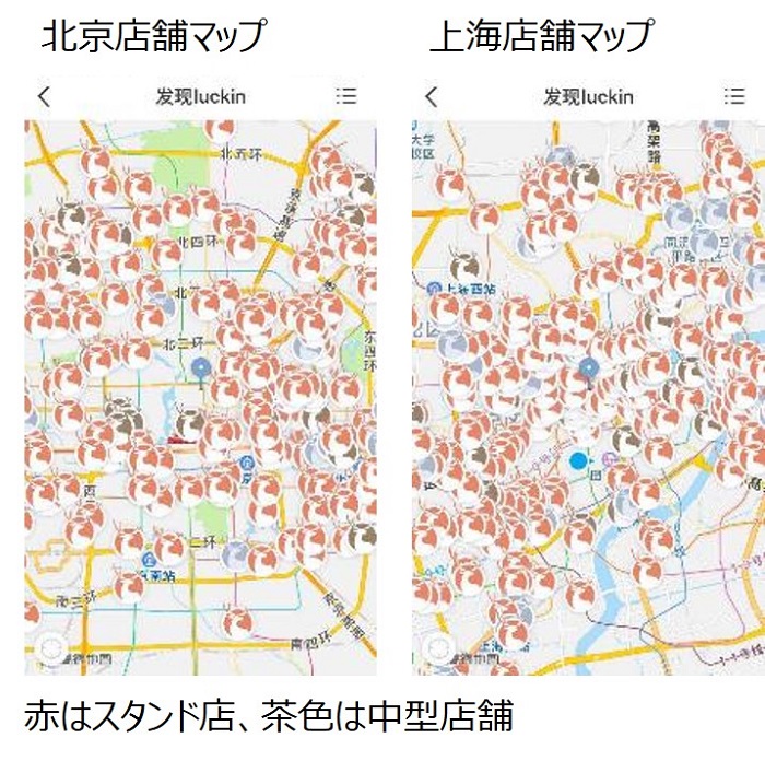 また、2017年の年末設立のluckin coffeeという店があるのですが、アプリで注文すると20分でコーヒーが手元に届くというサービスを行っています。1年で2073店舗まで増え、大手コーヒーチェーンとなりました。2019年にはスターバックスの店舗数を大きく超える4500店舗まで拡大予定と宣言しています。元々スターバックスよりも平均の値段が約半分と安いのですが、一杯無料や半額キャンペーンなどで急速に規模を拡大しています(図2)。