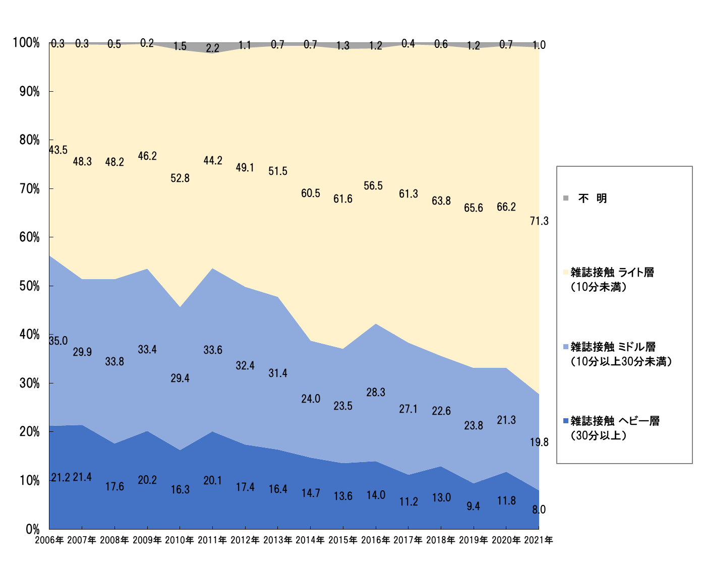 図6 雑誌接触時間 ライト層・ミドル層・ヘビー層割合
