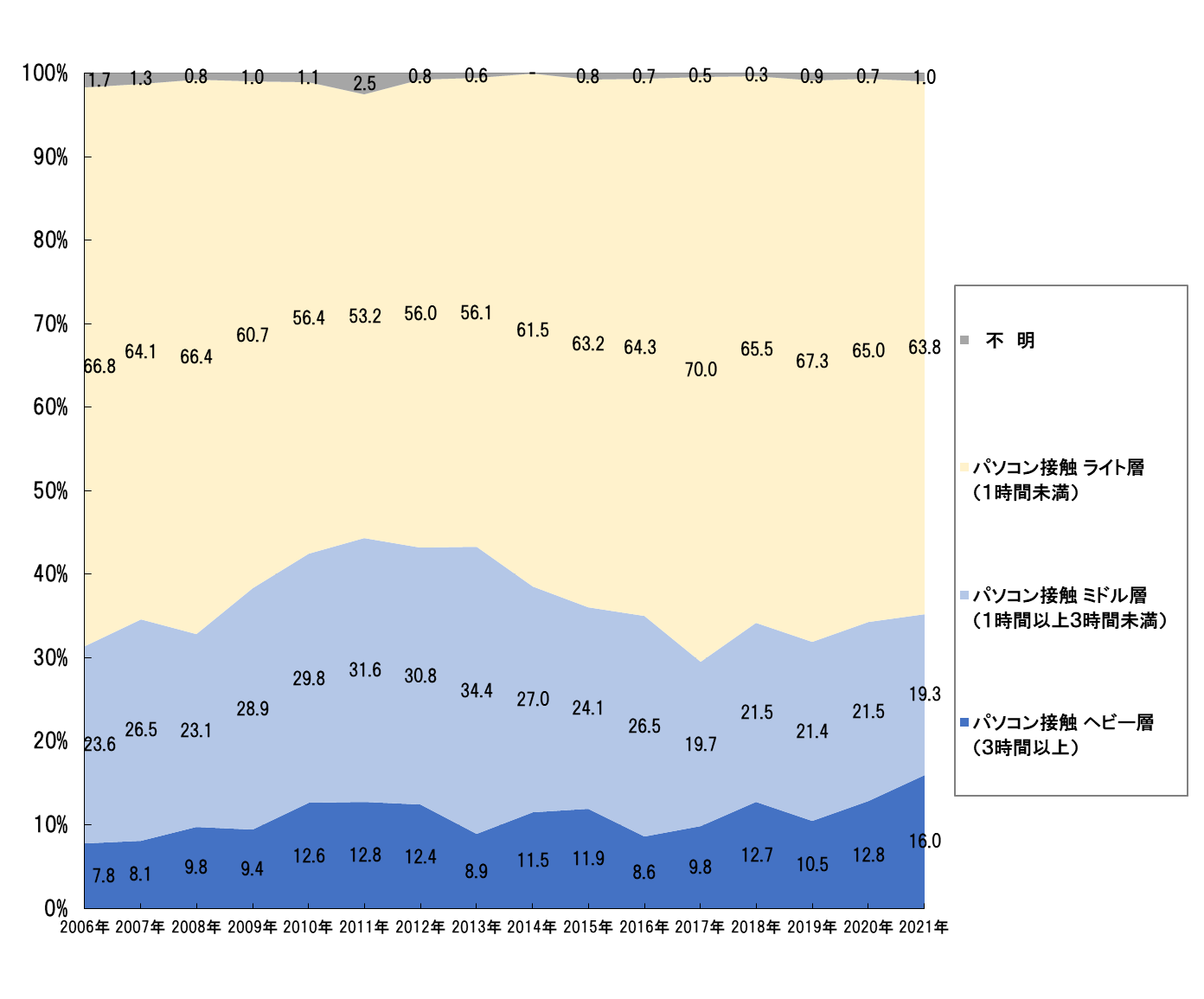図7 パソコン接触時間 ライト層・ミドル層・ヘビー層割合