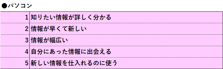 パソコンのトップ5、「知りたい情報が詳しく分かる」「情報が早くて新しい」「情報が幅広い」「自分にあった情報に会える」「新しい情報を仕入れる」からは、情報の新しさや領域の広さといった機能的な価値を生活者が感じていることがわかる。常に新しく、あらゆる種類の情報があるパソコンは、特定の誰かではない、不特定多数の“みんな”と言えるだろう。