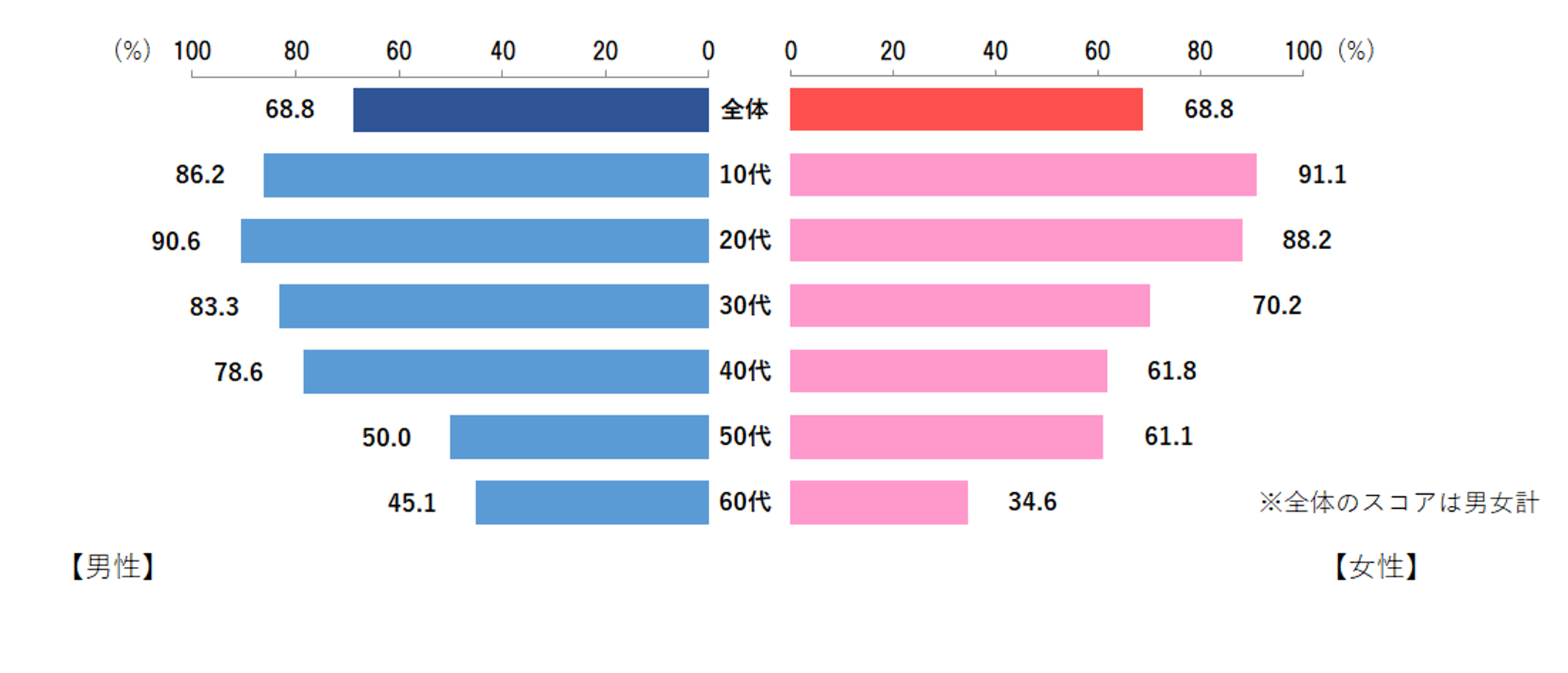 図2 「電車やバスなど乗り物の中では、スマートフォンを見ていることが多い」(「はい」と答えた割合)