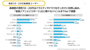 ここで、高頻度でTVerを利用する男性10~20代に注目します。彼らは、どんなジャンルをきっかけにTVerを使い始め、今はどんなジャンルを見ているのでしょうか。