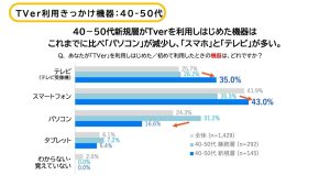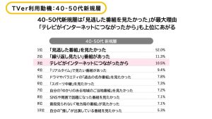 TVerを利用した動機についても、40~50代新規層は「テレビがインターネットにつながったから」が上位に挙がりました。