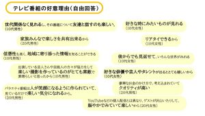 最後には10~20代に「テレビが好きな理由(自由回答)」を参照しつつ、テレビへのバラエティ番組の「安心感」について議論が及びました。