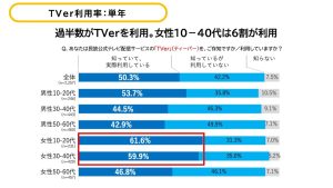 ここからは、見逃し配信サービスの代表格である「TVer」の利用状況について見ていきましょう。