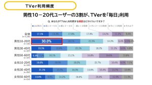 男性10~20代TVerユーザーの約3割が「毎日」利用
