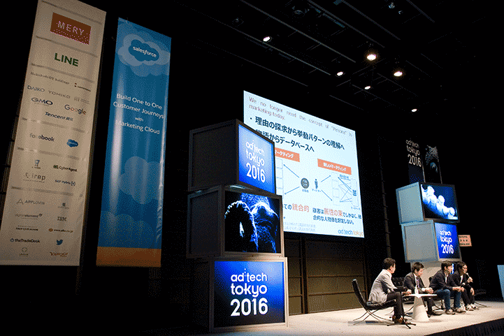 9月20日、21日の2日間にわたり、アジア最大級のマーケティングカンファレンス「ad:tech tokyo2016(アドテック東京)」が東京国際フォーラムにて開催され、業界を牽引するキーパーソンたちによって、最先端のマーケティング・テクノロジーについて熱い議論が交わされました。本セッションには(株)博報堂DYメディアパートナーズの柴田貞規が登壇。シーセンス(株)江川亮一代表取締役社長をモデレーターに、イオンドットコム(株)長谷川憲司CTO、ヤフー(株)マーケティングソリューションズカンパニー リサーチアナリシス部 天野武部長とともに、これまでどのようにデータ活用してきたのか、そして今後はどのようなデータを活かすことで新たなビシネス価値を生み出せるかなどについてディスカッションを展開しました。(以下敬称略)