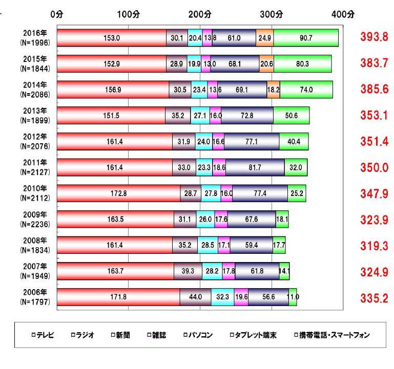 (博報堂DYメディアパートナーズ 「メディア定点調査2016」時系列分析より)