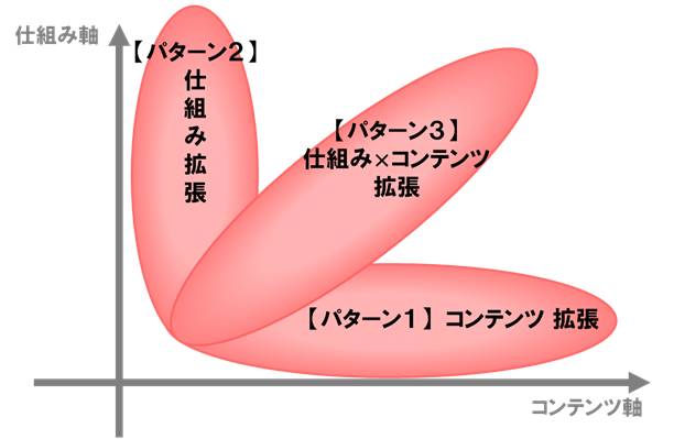 ・ネット動画サービスF社:自社サイトの視聴データを分析し、ユーザーの好みに合うコンテンツを開発。仕組みで得た資産(=データ)をベースにコンテンツを拡張している。