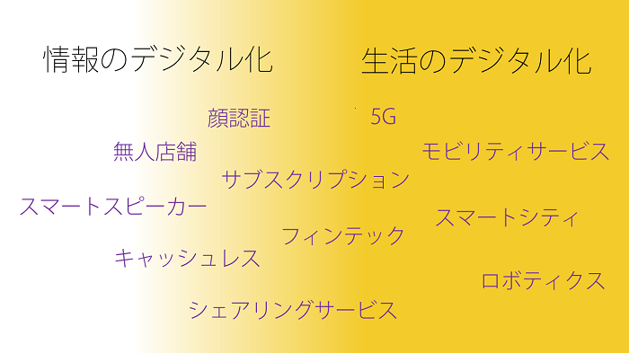 去年は顔認証、無人店舗、スマートスピーカーなどについて主にお話しました。来年は5Gがスタートしますし、自動車会社と通信会社が組んだモビリティサービスが始まるというニュースも出ています。
