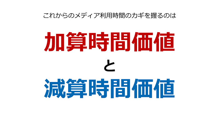 メディア接触時間のカギを握っているのは「加算時間価値」と「減算時間価値」という2つのコンセプトです。この2つについて簡単にご説明した後で、減算時間価値ではなく加算時間価値を高めることが大事なんだという話をしたいと思います。