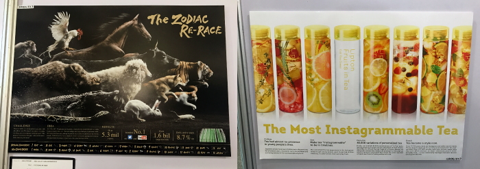 博報堂DYグループからも『IT WAS THIS HIGH/ちょうどこの高さ』(Yahoo!JAPAN/防災啓蒙活動)や『The ZODIAC RE-RACE』(mixi/モンスターストライク)、『The Most Instagrammable Tea』(ユニリーバジャパン/Lipton)など、多くの出品された作品が展示されています。