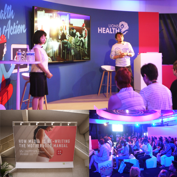ライオンズヘルスの初日、博報堂DYメディアパートナーズとして初めて、カンヌでセミナーを行いました。内容は、妊婦向けアプリ『妊婦手帳』をテーマにした、”How Media is Re-writing the Motherfood Manual”(Saturday 18 June 11:00-11:30 Health in Action Stage)。メディア・コンテンツクリエイティブセンターの丸山安曇氏と、博報堂の皆川治子氏がスピーカーとして登壇しました。初日の1番目の講演にも関わらず、立ち見が出るほどの観客が集まり、講演後にはインド、ポーランド、ブルガリアなど各国の人々からビジネスモデル等に関する質問があがりました。